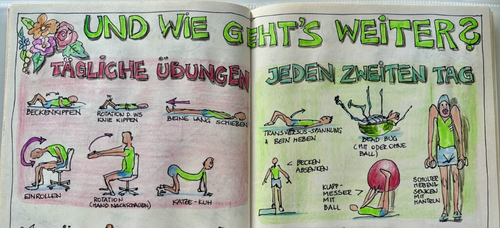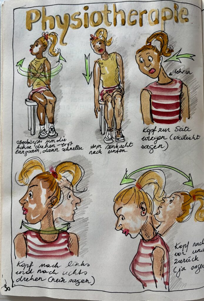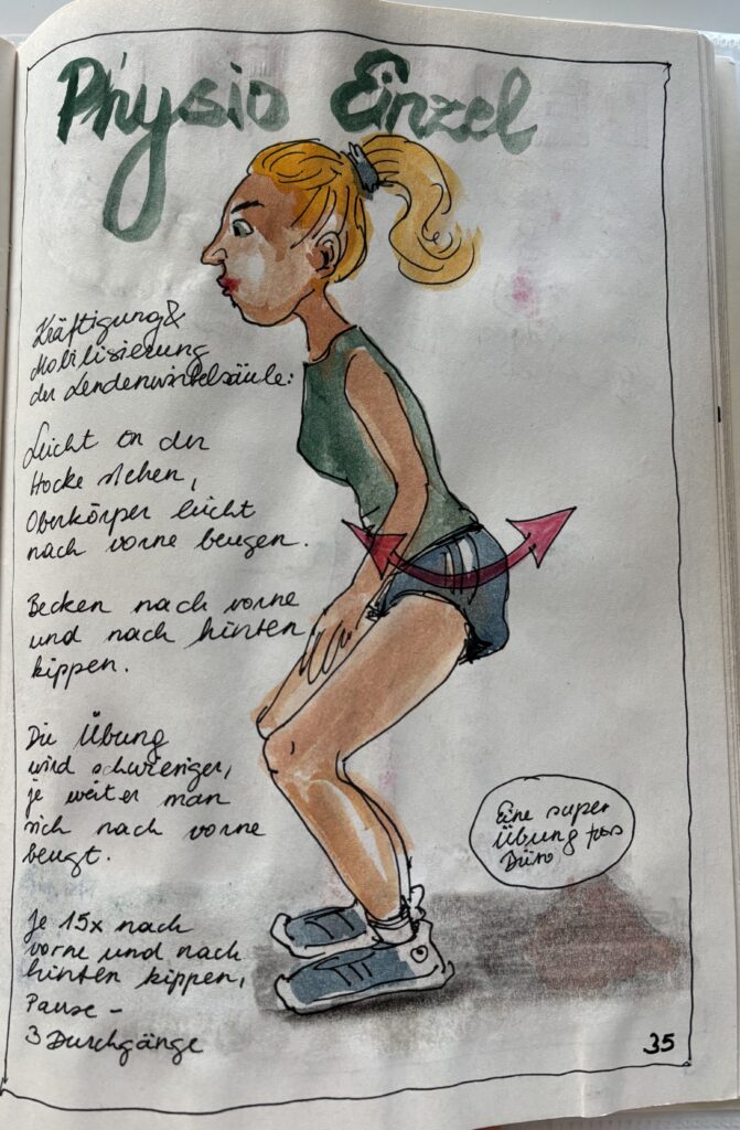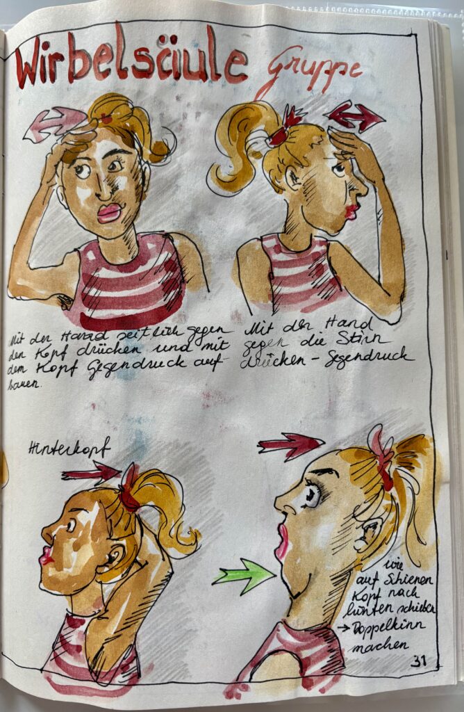 Es ist so meine Art, Eindrücke, Erlebnisse und Erkenntnisse in Skizzenbüchern und -heften festzuhalten. Das mache ich seit der Kindheit. Also schlug sich auch die Physiotherapie so nieder.