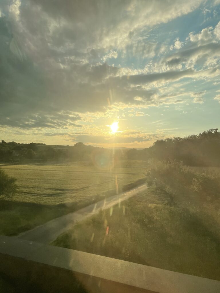 Ich persönlich liebe ja Wolken ganz besonders und eines meiner liebsten Hobbys ist „in die Luft zu schauen“. Diesen Himmel habe ich im August 2024 von der Franz-Josefs-Bahn aus bei Hadersdorf am Kamp fotografiert. Wenn der Sommerwind Getreidefelder streichelt, sodass ich ein Rauschen höre, die Vogerln zwitschern und die Sonne durch ein paar Wölkchen mehrfarbige Strahlen schickt, dann finde ich das wundervoll.