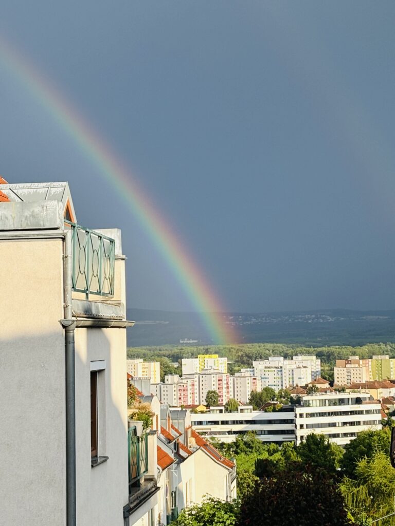 Apropos Lichtbrechung: zum mythenumrankten, symbolträchtigen Regenbogen muss ich wohl nicht viel erklären. Auch wenn sich gerade „nichts Besonderes“ tut und man nicht irgendwo in der Ferne auf Urlaub ist, gibt es auf Schritt und Tritt Wunder, die zwar nicht mehr unergründlich aber trotzdem wunderschön sind.