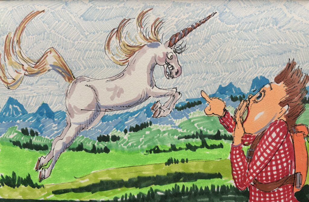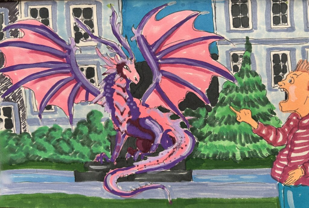 Fällt dir was auf? Ein Wunder muss laut der Ur-Wortbedeutung also nicht unbedingt ein Glücksbringer sein, sondern einfach nur unergründlich. Wenn der Herr am Bild im Stadtpark einem Drachen begegnet, ist das unergründlich, aber nicht unbedingt erquickend. Wer weiß, was dem noch einfällt?