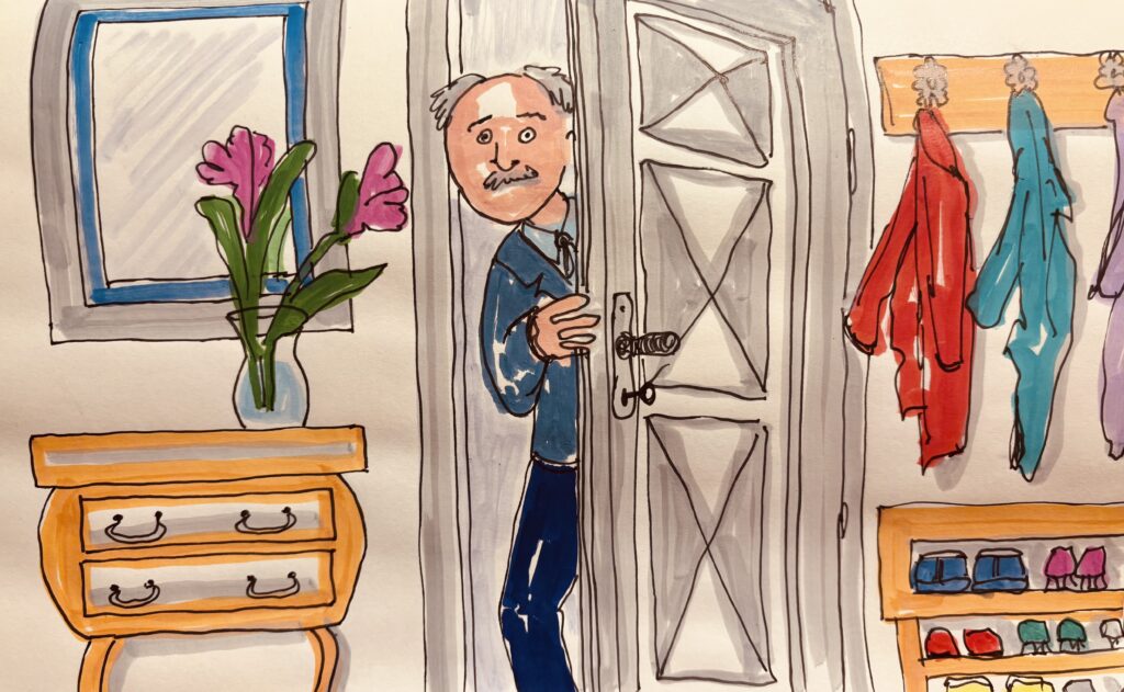 Gemessen an meinen Träumen, finde ich, dass es uns ja eh ganz gut geht. Und das gehört immer wieder bekräftigt. Der Opa, der hier zur Tür hereinschaut, hat uns gelehrt, dass die einzig richtige Antwort auf „Wie geht’s?“ „DANKE, GUT!“ ist.