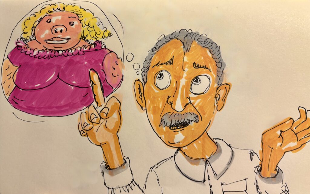 Wie mich ausgerechnet ein frecher Body-Shamer lehrte, dass es vielleicht doch nicht immer und überall nur um mich geht, obwohl ich offenbar die Zauberkraft besitze, Menschen in Säue zu verwandeln. Es lebt halt doch jede*r in der eigenen Bubble, in der er oder sie ständig um sich selbst kreist.