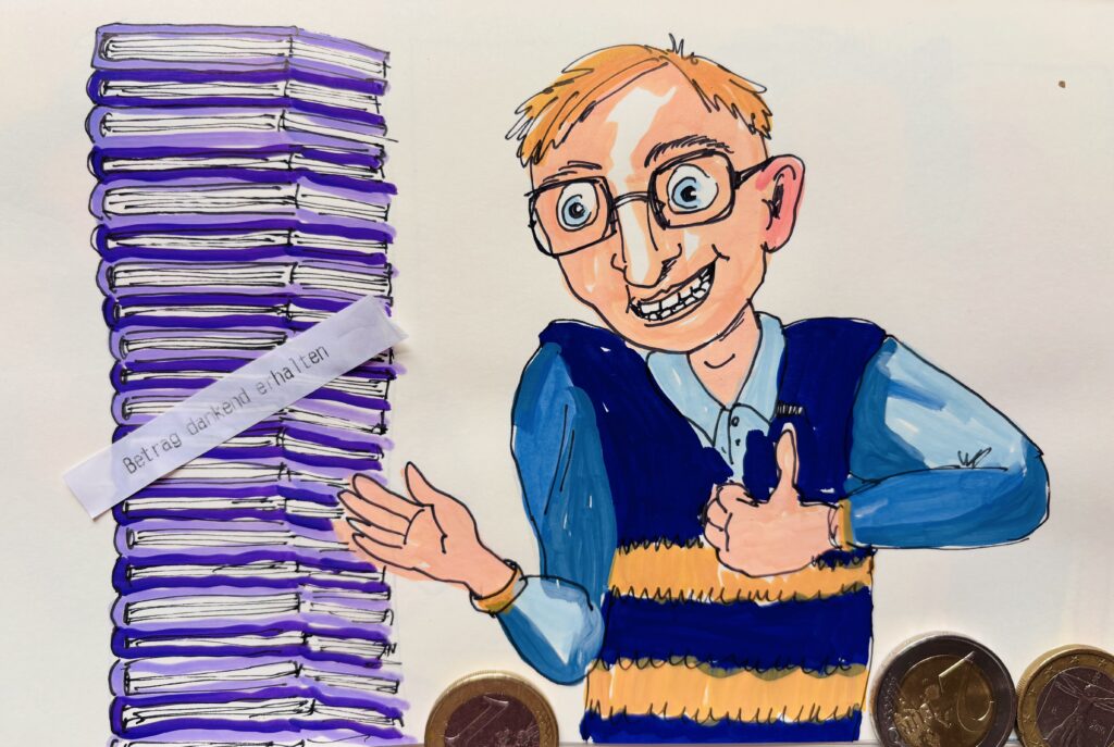 „Betrag dankend erhalten“ heißt es, nachdem der Goldesel ordentlich gespieben hat.